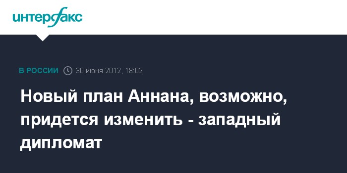 Женева. 30 июня. INTERFAX.RU - Новый план спецпосланника ООН и ЛАГ Кофи Аннана, предусматривающий процесс политического перехода в Сирии, скорее всего, придется изменить, поскольку Россия и Запад не могут придти к соглашению, заявила журналистам в Женеве западный дипломат на условиях анонимности. "Россия выразила ряд возражений относительно пунктов текущего плана. Скорее всего, план придется изменить", - заявила она в субботу во время перерыва на обед после двухчасового заседания в рамках международной конференции по Сирии.