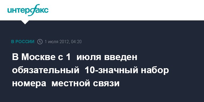 июля 2012 года переводят абонентов на единый десятизначный формат набора