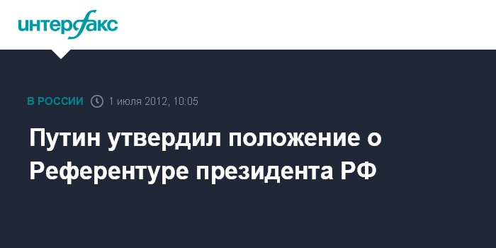 Москва. 1 июля. INTERFAX.RU - Президент РФ Владимир Путин подписал указ "Об утверждении Положения о Референтуре Президента Российской Федерации", сообщает в воскресенье официальный сайт Кремля. Согласно указу, Референтура президента РФ является самостоятельным подразделением администрации главы государства (на правах управления президента РФ).