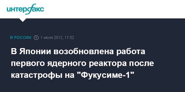 Токио. 1 июля. INTERFAX.RU - Третий реактор на АЭС "Ои" в префектуре Фукуи на западе Японии вновь запущен в 21:00 местного времени (16:00 мск), проинформировала в воскресенье японская электроэнергетическая компания "Кансай электрик пауэр", которая управляет этой атомной станцией. Ожидается, что реактор вновь начнет вырабатывать электричество в среду 4 июля.