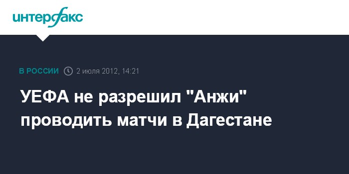 Москва. 2 июля. INTERFAX.RU - Исполнительный комитет УЕФА запретил махачкалинской футбольной команде "Анжи" проводить домашние матчи Лиги Европы сезона-2012/2013 на территории Дагестана, сообщила пресс-служба клуба в понедельник.