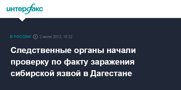 Махачкала. 2 июля. INTERFAX.RU - По факту заражения шести жителей Ахвахского района Дагестана кожной формой сибирской язвы Ботлихским межрайонным следственным отделом начата процессуальная проверка, сообщил "Интерфаксу" официальный представитель СУ СКР по Дагестану Расул Темирбеков.
