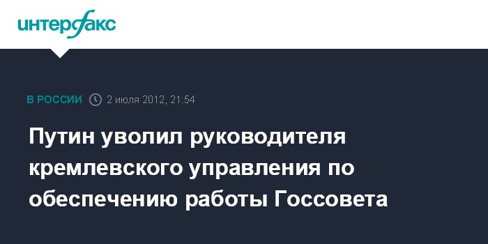 Путин уволил руководителя кремлевского управления по обеспечению работы Госсовета