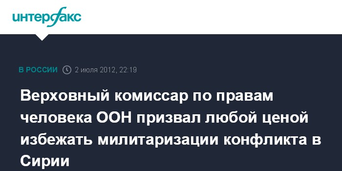Нью-Йорк (ООН). 2 июля. INTERFAX.RU - Страны-члены Совета Безопасности ООН должны принять все возможные меры, которые позволят избежать еще большей милитаризации конфликта в Сирии, сообщила в понедельник журналистам верховный комиссар по правам человека ООН Наванетем Пиллай.