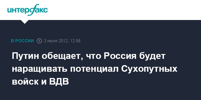 "Практически все ведущие страны мира уделяют повышенное внимание наращиванию потенциала своих сухопутных сил, а также десантных частей и других сил быстрого реагирования", - сказал В.Путин на совещании, посвященном выполнению госпрограммы вооружения в части оснащения Сухопутных войск и ВДВ.