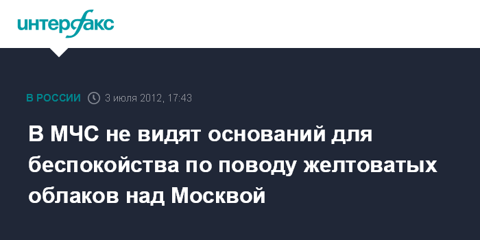 По словам представителя ведомства, во вторник в МЧС поступали звонки о появлении над городом пелены желтоватого цвета. "МЧС России просит всех жителей Москвы и гостей столицы сохранять спокойствие", - сказал собеседник агентства.