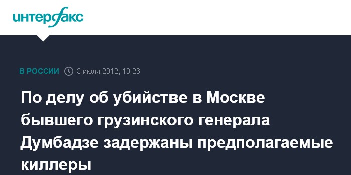 Москва. 3 июля. INTERFAX.RU - Задержаны подозреваемые в убийстве бывшего грузинского генерала Романа Думбадзе, который был расстрелян в мае этого года в Москве.