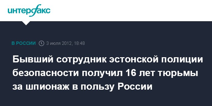 Бывший сотрудник эстонской полиции безопасности получил 16 лет тюрьмы за шпионаж в пользу России