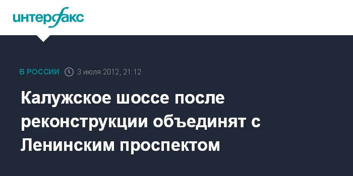 Москва. 3 июля. INTERFAX.RU - Калужское шоссе на юго-западе Москвы в ходе реконструкции будет соединено с Ленинским проспектом, сообщил во вторник на встрече с журналистами мэр столицы Сергей Собянин.