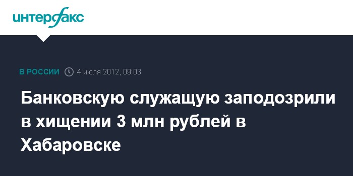 Банковскую служащую заподозрили в хищении 3 млн рублей в Хабаровске