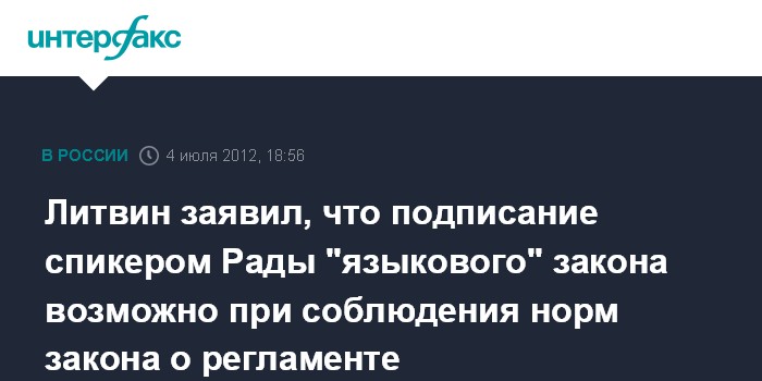 Как говорится в заявлении пресс-секретаря спикера украинского парламента относительно позиции Литвина в вопросе подписания закона для передачи его на подпись главе государства, подписание председателем Верховной Рады Украины закона об основах государственной языковой политики возможно лишь при условии четкого соблюдения норм закона о регламенте, который содержит четкую процедуру рассмотрения законопроектов и их подготовки на подпись руководителю парламента.