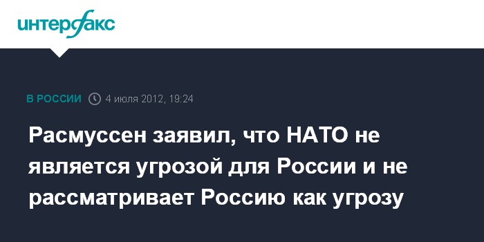 Расмуссен заявил, что НАТО не является угрозой для России и не рассматривает Россию как угрозу
