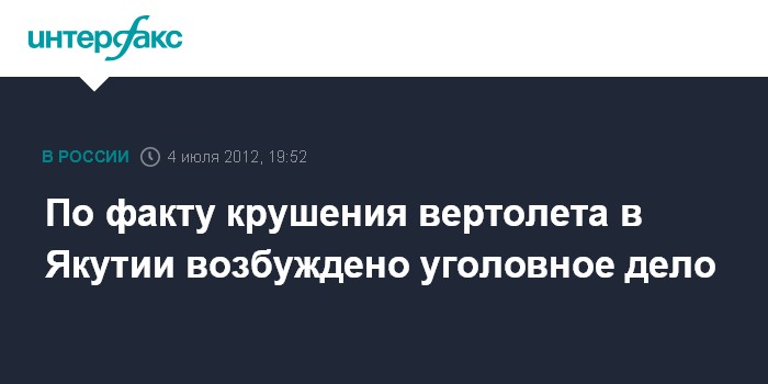 По факту крушения вертолета в Якутии возбуждено уголовное дело