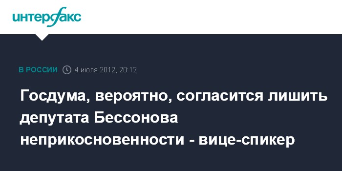 Госдума, вероятно, согласится лишить депутата Бессонова неприкосновенности - вице-спикер