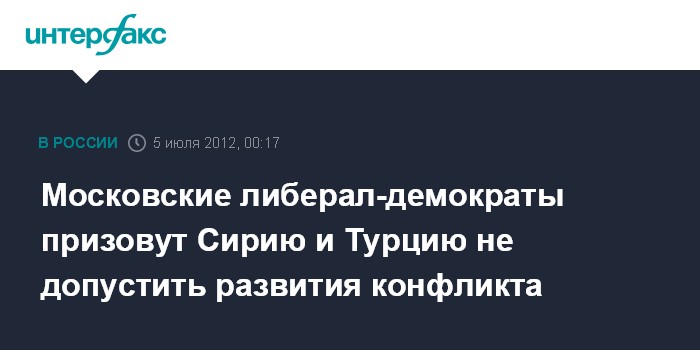 Московские либерал-демократы призовут Сирию и Турцию не допустить развития конфликта
