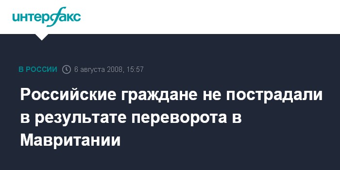 Москва. 6 августа. INTERFAX.RU - Обстановка в столице Мавритании Нуакшоте остается спокойной, несмотря на произошедший переворот, российские граждане в безопасности, сообщает посольство РФ в Мавритании.