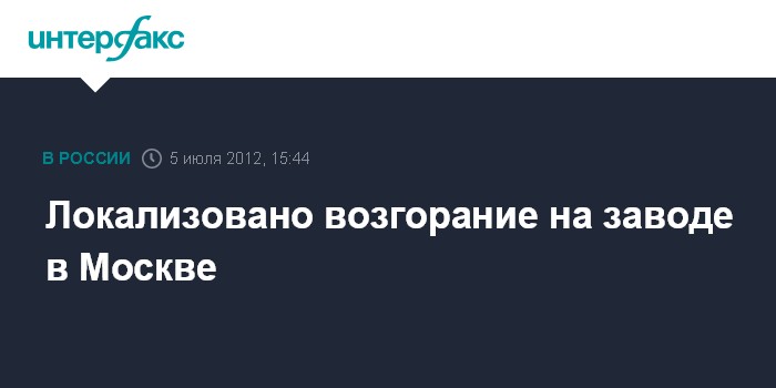 Москва. 5 июля. INTERFAX.RU - Пожар на заводе на улице маршала Жукова, 1, строение 1, локализован, сообщили "Интерфаксу" в пресс-службе ГУ МЧС России по Москве.