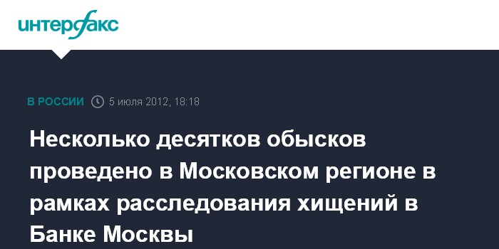 Несколько десятков обысков проведено в Московском регионе в рамках расследования хищений в Банке Москвы