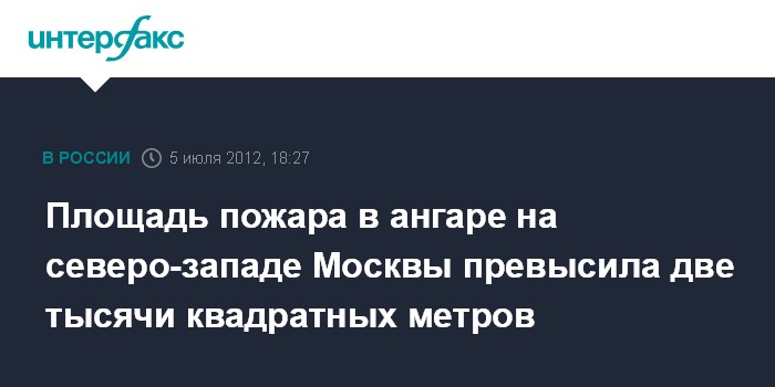 Москва. 5 июля. INTERFAX.RU - Площадь пожара в ангаре на Ленинградском проспекте Москвы увеличилась до 2 тыс. квадратных метров, сообщил "Интерфаксу" источник в правоохранительных органах.
