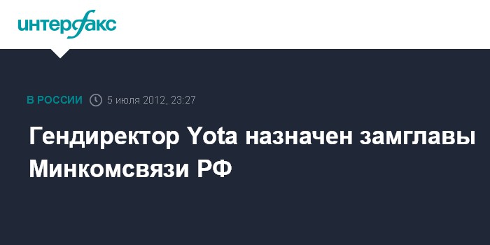 Гендиректор Yota назначен замглавы Минкомсвязи РФ