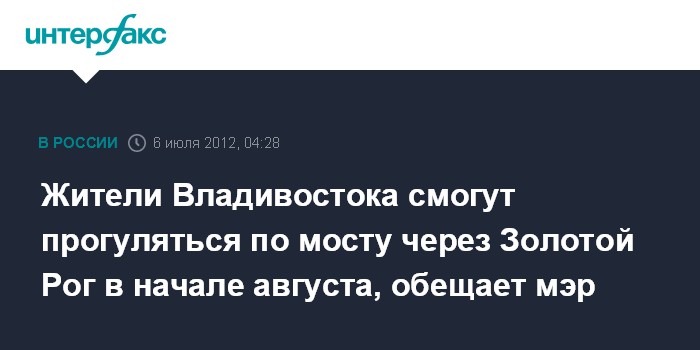 Владивосток. 6 июля. ИНТЕРФАКС-ДАЛЬНИЙ ВОСТОК - Мэр Владивостока Игорь Пушкарев пообещал жителям города, что долгожданная акция "Пешком по мосту через Золотой рог", отложенная из-за смещения сроков сдачи объекта, состоится в начале августа.