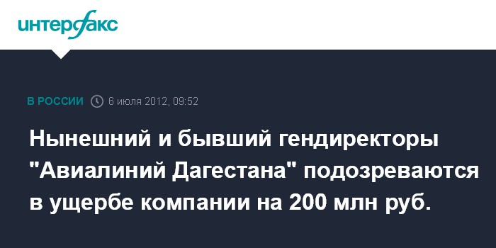 Нынешний и бывший гендиректоры "Авиалиний Дагестана" подозреваются в ущербе компании на 200 млн руб.