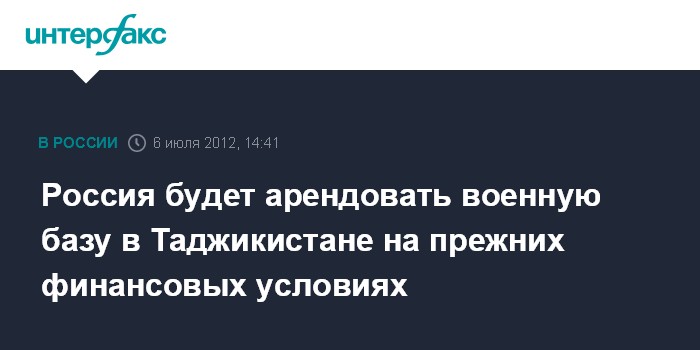 Москва. 6 июля. INTERFAX.RU - Россия будет арендовать 201-ю российскую военную базу на территории Таджикистана после 2014 года на прежних финансовых условиях, заявил журналистам в пятницу министр обороны Анатолий Сердюков.