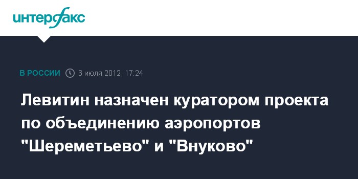 Левитин назначен куратором проекта по объединению аэропортов "Шереметьево" и "Внуково"