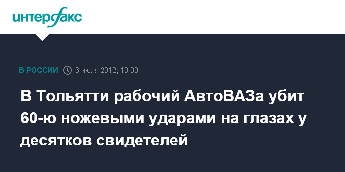 В Тольятти рабочий АвтоВАЗа убит 60-ю ножевыми ударами на глазах у десятков свидетелей