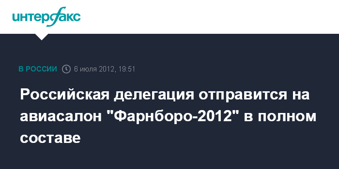 Российская делегация отправится на авиасалон "Фарнборо-2012" в полном составе