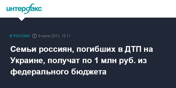 Семьи россиян, погибших в ДТП на Украине, получат по 1 млн руб. из федерального бюджета