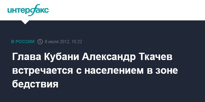 Краснодар. 8 июля. INTERFAX.RU - Губернатор Краснодарского края Александр Ткачев проводит второй день в пострадавших от наводнения районах, где он инспектирует ход спасательно-восстановительных работ и общается с населением. "Сегодня губернатор объезжает все пострадавшие территории, встречается с людьми, спрашивает их о том, какая помощь им оказывалась и в чем они нуждаются, успокаивает", - сообщили агентству "Интерфакс-Юг" в пресс-службе администрации региона. Также собеседник агентства напомнил, что в понедельник начнутся денежные выплаты пострадавшим.