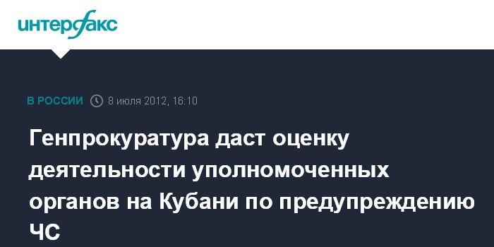 Генпрокуратура даст оценку деятельности уполномоченных органов на Кубани по предупреждению ЧС
