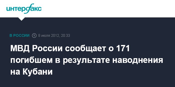 МВД России сообщает о 171 погибшем в результате наводнения на Кубани