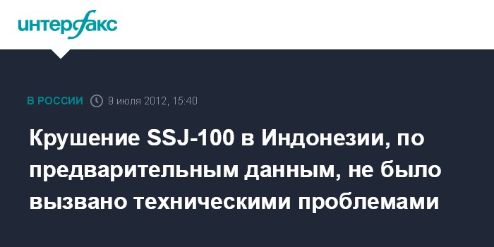 Крушение SSJ-100 в Индонезии, по предварительным данным, не было вызвано техническими проблемами