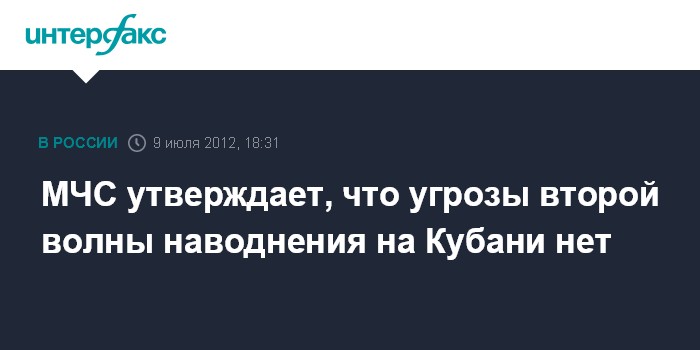 Москва. 9 июля. INTERFAX.RU - МЧС России опровергает информацию ряда СМИ о возможной второй волне наводнения на Кубани.