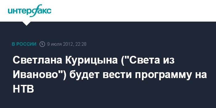 Москва. 9 июля. INTERFAX.RU – Светлана Курицына, получившая известность после появления в Сети ролика о достижениях "Единой России" ("Света из Иваново"), станет ведущей телеканала НТВ.