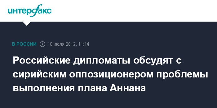 Российские дипломаты обсудят с сирийским оппозиционером проблемы выполнения плана Аннана