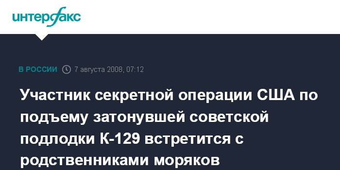 Участник секретной операции США по подъему затонувшей советской подлодки К-129 встретится с родственниками моряков