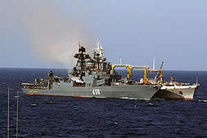 "Во вторник большой противолодочный корабль "Адмирал Чабаненко" и три больших десантных корабля вышли из Североморска в Средиземное море. В Северном море к ним присоединится сторожевой корабль Балтфлота "Ярослав Мудрый" и суда вспомогательного флота", - сообщил "Интерфаксу" военно-дипломатический источник. "Программой похода запланирован заход в сирийский порт Тартус, где располагается пункт материально-технического обеспечения ВМФ", - сказал собеседник агентства. Собеседник агентства сообщил, что на борту кораблей находятся подразделения морской пехоты Северного флота. По его словам, поход отряда проходит в соответствии с планами боевой подготовки ВМФ. Он не связан с обострением ситуации в Сирии. "В порту Тартус корабли пополнят запасы топлива, воды и продовольствия", - добавил собеседник агентства. Он уточнил, что средиземноморский поход отряда кораблей ВМФ продлится до конца сентября - начала октября.