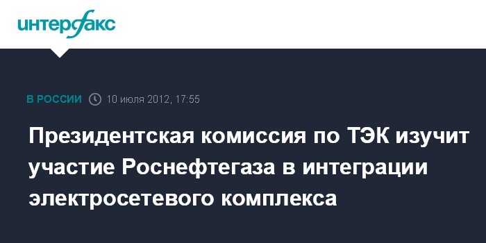 Москва. 10 июля. INTERFAX.RU - Президентская комиссия по ТЭК решила рассмотреть дополнительно вопрос участия "Роснефтегаза" в капитале интегрируемых ОАО "Федеральная сетевая компания ЕЭС"(ФСК) и ОАО "Холдинг МРСК".