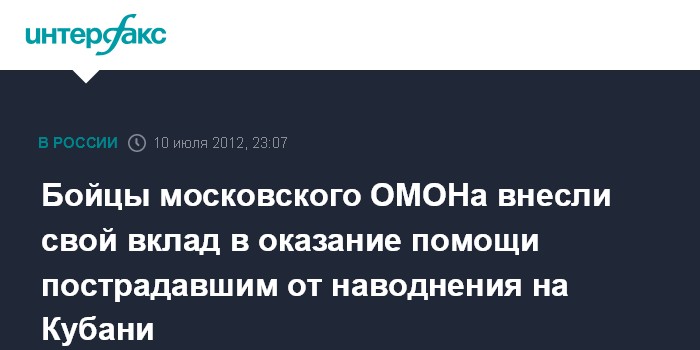 Бойцы московского ОМОНа внесли свой вклад в оказание помощи пострадавшим от наводнения на Кубани