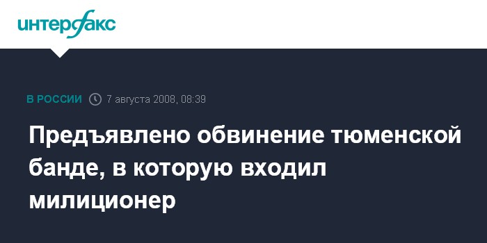 Москва. 7 августа. INTERFAX.RU - В Тюменской области предъявлено обвинение четырем участникам банды, похитившим в результате нескольких разбойных нападений денег и имущества на общую сумму более 4,5 млн рублей.