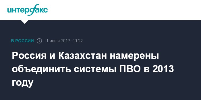Чолпон-Ата (Киргизия). 11 июля. INTERFAX.RU - Договор о создании единой региональной российско-казахстанской системы ПВО будет подписан в 2013, заявил командующий войсками ПВО сил Воздушной обороны Вооруженных Сил Казахстана полковник Нуржан Муканов.