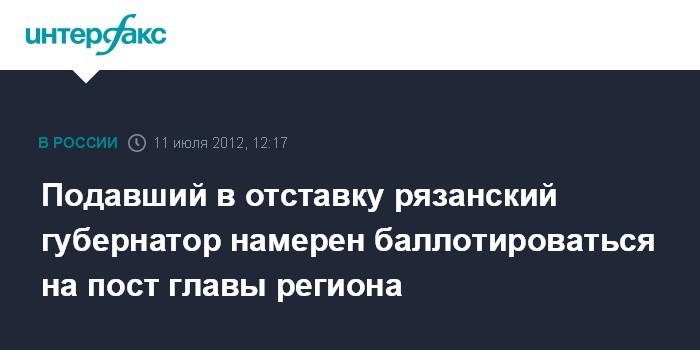 Подавший в отставку рязанский губернатор намерен баллотироваться на пост главы региона