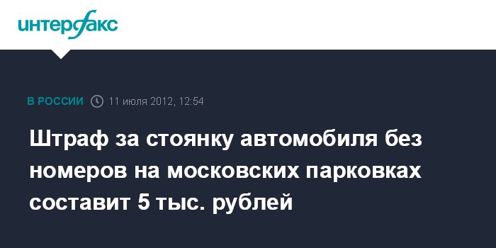 Штраф за стоянку автомобиля без номеров на московских парковках составит 5 тыс. рублей