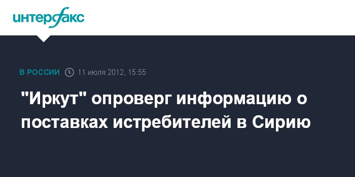 "Иркут" опроверг информацию о поставках истребителей в Сирию