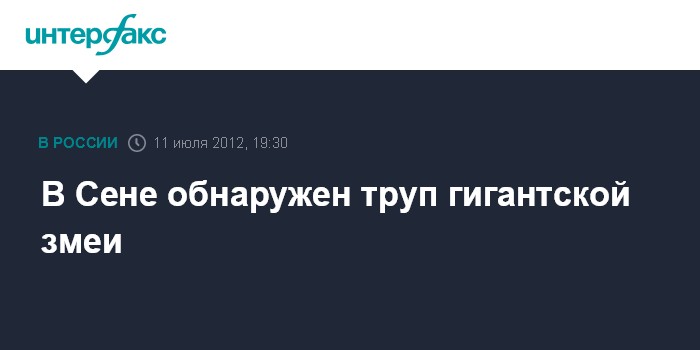 Париж. 11 июля. INTERFAX.RU - Речная полиция Парижа выловила в Сене труп змеи весом в 40 кг, сообщила в среду пресс-служба столичной полиции в своем еженедельном отчете. "Труп змеи длиной 3 м находился в состоянии разложения", - говорится в сообщении стражей порядка. Столичные полицейские отмечают, что речь идет, вероятнее всего, о крупном питоне.
