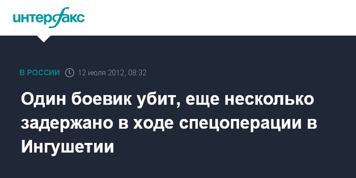 Назрань. 12 июля. INTERFAX.RU - Сотрудниками правоохранительных органов в ходе спецоперации на окраине селения Экажево Назрановского района Ингушетии один боевик ликвидирован, еще несколько задержано, сообщил в четверг агентству "Интерфакс-Юг" источник в правоохранительных органах Ингушетии.