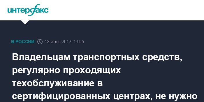 Владельцам транспортных средств, регулярно проходящих техобслуживание в сертифицированных центрах, не нужно будет получать техосмотр